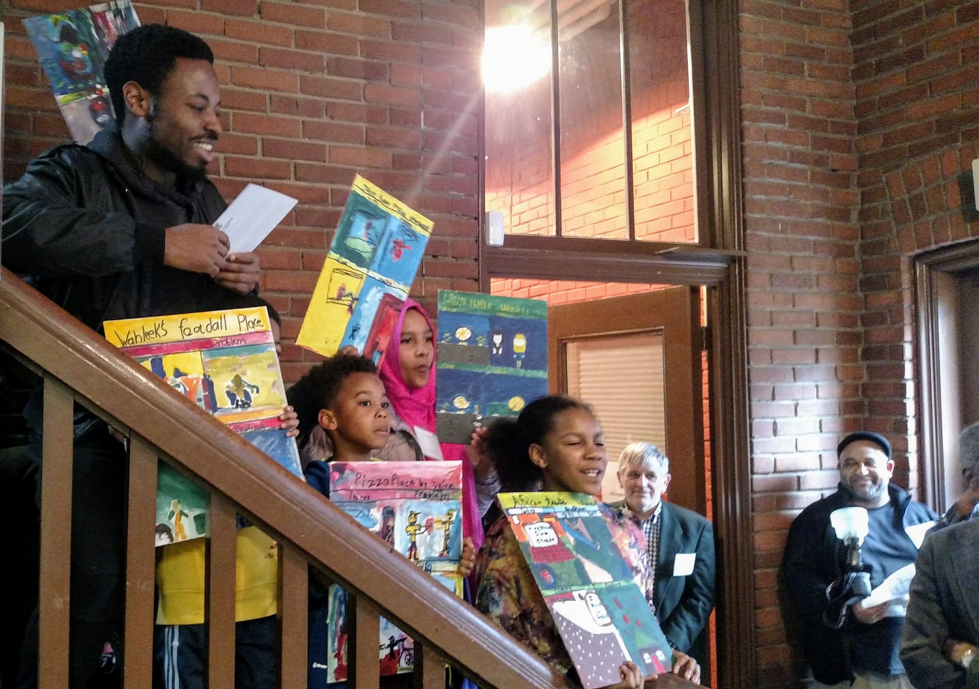The building also brings in work from youth artists from Umoja PEACE Center Young Geniuses Program at Africatown. Those aspiring artists include: Azon Johnson, Emoni Slade, Fanikia Johnson, Jasiri Johnson, Latricia Jackson, Naomi Youmans, Saire Williams, and Wahleek Garrett, each of whom shared a project and said a few words about it at the event.