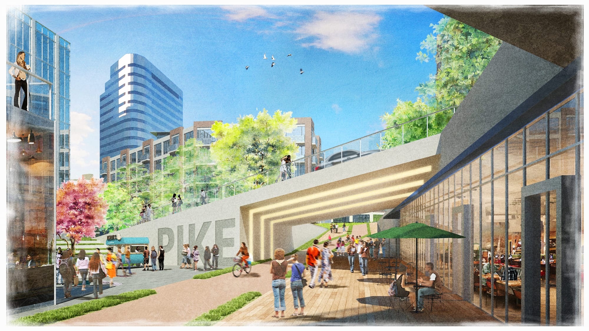 The conceptual designs, rich in greenery and public amenities, highlight this healthier, more interconnected, and sustainable vision of Seattle.