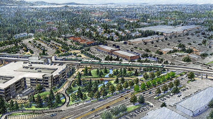 Meanwhile, Mountlake Terrace opted to allow 12-story towers near its light rail station, though no developers have taken them up on the full height allowance yet. Instead, a large eight-story apartment complex with 425 homes is in the works next door to the station.