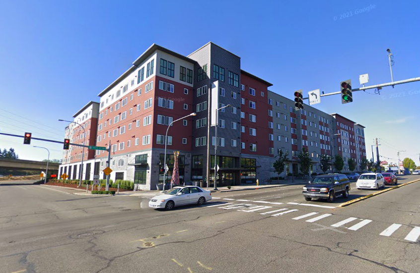 Despite the construction surrounding the future Lynnwood City Center Station, it can be difficult to spot evidence of big impending changes afoot. Kinect @ Lynnwood, however, represents a clear shift toward residential density. Located next to the Interurban trail, which extends (haltingly at times) from North Seattle all the way to Everett, residents will one day be able to use the trail to walk or roll to the light rail station or Alderwood Mall. Already leasing out apartments, the development includes 239 homes, 48 of which are restricted as affordable through the Multi-Family Tax Exemption (MFTE) program. There is no commercial space in the development, and approximately 114,000 square feet of structured parking were integrated into the structure. Prior to the development of Kinect @ Lynnwood, the site was the location of a single story commercial structure and drive-thru coffee stand.