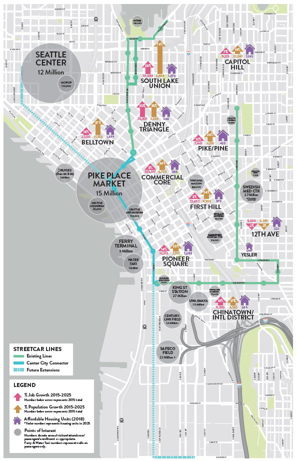 The coalition pointed out the connected streetcar line will provide service to more than “8,000 new units of affordable housing going in by 2025” along the route. The route would serve a diverse cross-section of Seattle.