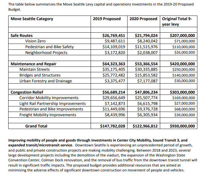 Transportation spending would increase $130 million to $609 million next biennium under Mayor Durkan’s plan, although some of that money is Move Seattle levy dollars leftover from earlier years.