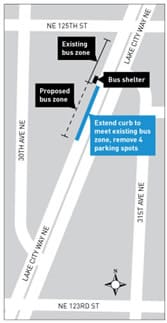 The Transit Spot Improvement Program involves improving delays experienced or caused by buses due to inadequate transit infrastructure. Generally, funding will go to installing concrete bus zone improvements, bus lanes, and rear-door bus pads. The proposal does name Gilman Ave Bus Safety Improvements, Lake City Way NE and NE 125th St Bus Stop Improvements, and 15th Ave NW and NW Market St Signal Improvements. For the Lake City Way improvement, an extended bus zone south and extended curb will help prevent southbound buses from blocking off NE 125th St. So far for the 15th Ave NW improvement, bus lanes and removing a center turn lane will help reduce delay experienced northbound on the corridor.