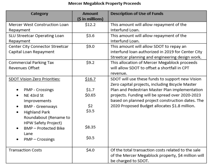 Seattle Mayor Jenny Durkan’s proposed 2020 budget heeds the call of the Move Seattle levy oversight committee and street safety advocates by adding more funding to complete bike projects: over $8 million for protected bike lanes and $2 million for neighborhood greenways. These one-time funds come from the sale of the Mercer Megablocks.