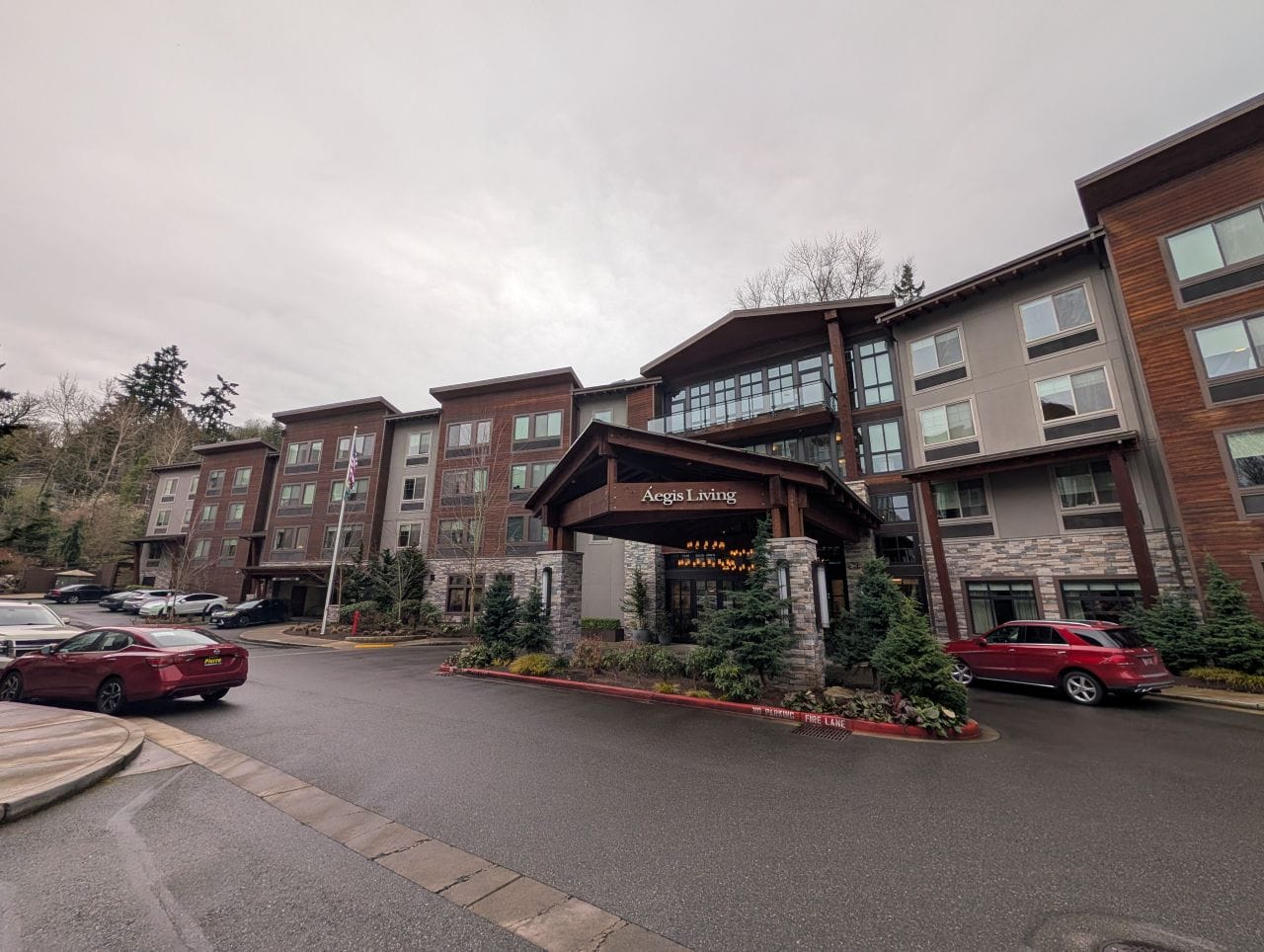 Right behind the Hadley and Aviara Apartments and just outside of the Town Center boundaries, another multi-family building was completed with the Aegis Mercer Island. The senior living center is four stories tall and features 89 homes, surface parking, and a garage. The facility is the latest completion in the area, having opened in 2019.