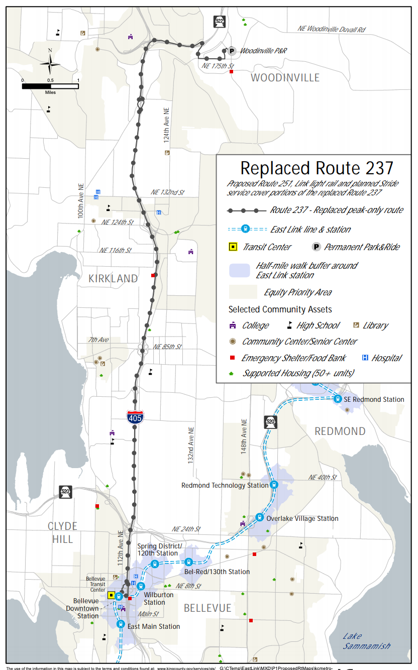 In developing the proposals, Metro initially sought general feedback earlier this year from the public and directly engaged with a 27-member Mobility Board. Key themes that came out of that process were a desire for more local connections, reasonable transfers, keeping fast travel times, additional weekend and off-peak service, and a focus on primary locations like Downtown Bellevue and Redmond, Microsoft’s campus, colleges, and the Spring District.
