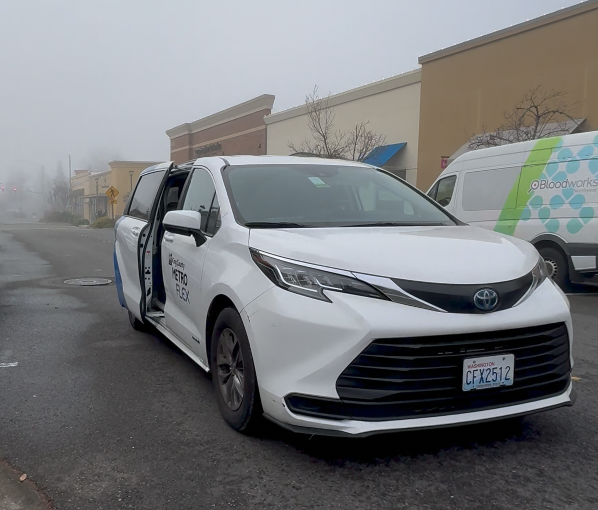 As the van steadily approached my location, I walked over to the nearby pickup point where the Metro Flex van picked me up. Like an Uber, the driver confirmed my name and used a phone to navigate and accept ride requests. Sitting in the van, a newer Toyota Sienna Hybrid, I felt a bit cramped but was otherwise fine. Like a Metro bus, there was a screen that divided the driver’s compartment with passenger seating and an ORCA card reader.