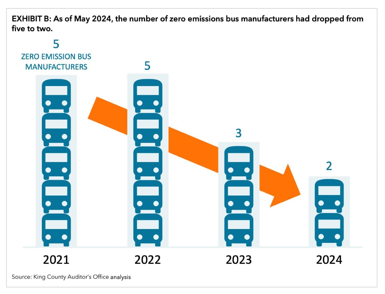 Manufacturers have been leaving the North American market, declining from five in 2021 to just two this year: New Flyer and Gillig. That has put pressure on the two remaining manufacturers to produce battery-electric buses, as demand for them from transit agencies across the continent has soared. Consequently, this perfect storm could constrain Metro’s ability to maintain a necessary fleet size for operations as the agency transitions to a zero-emissions fleet.