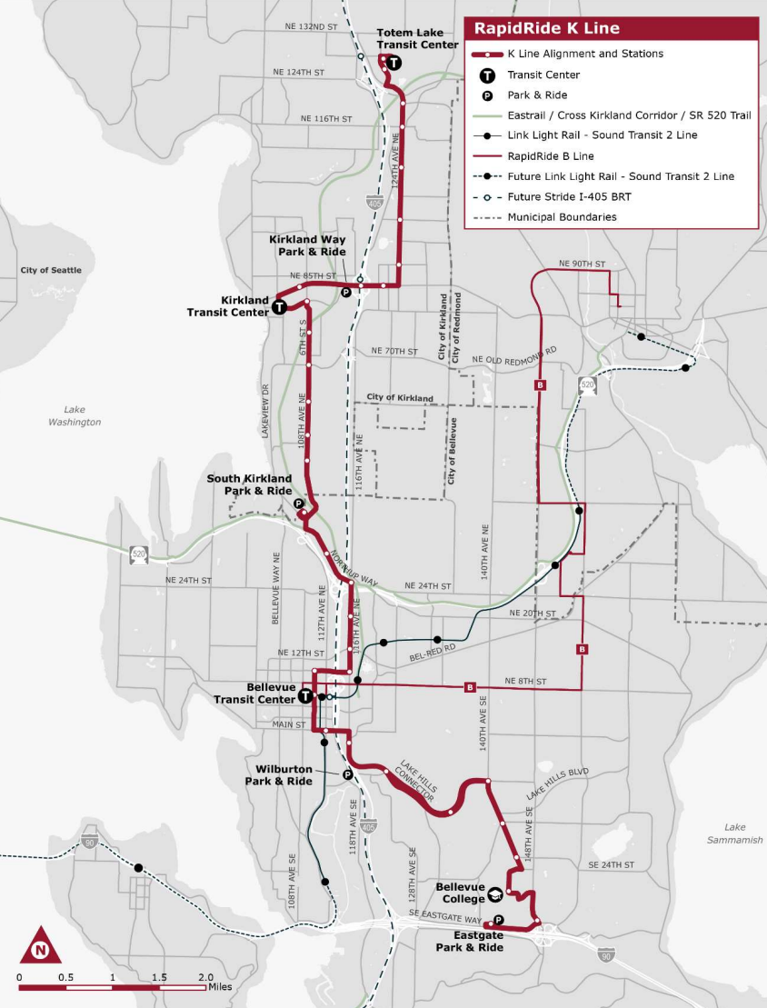 “During the upcoming preliminary design phase, Metro will continue working closely with the Cities of Kirkland and Bellevue and the Federal Transit Administration (FTA) to refine project elements, identify efficiencies, and ensure the K Line continues to meet RapidRide standards for speed, reliability, and customer experience,” Switzer continued.