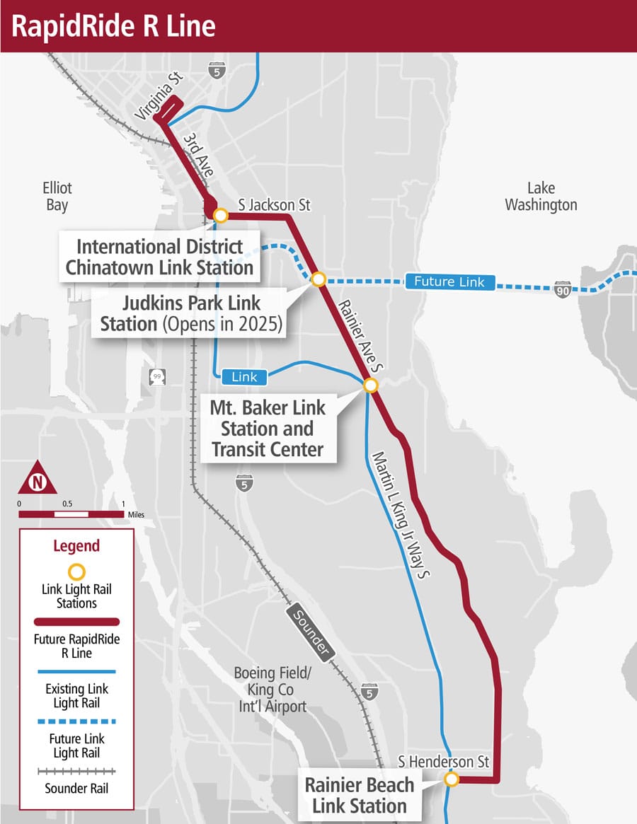 According to the county’s budget summary, scope changes for the R Line will include “revisiting planned roadway reconfigurations, station locations, and signal upgrades in areas where SDOT [the Seattle Department of Transportation] has already implemented improvements.”