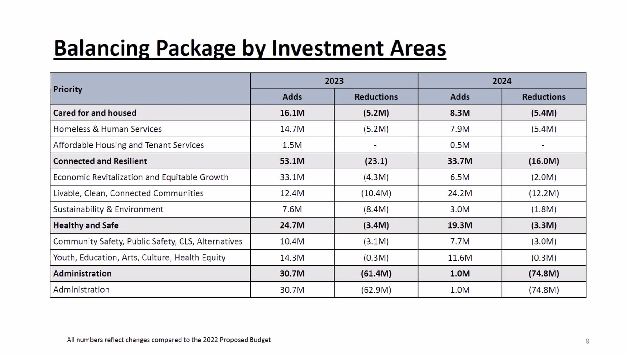 Council actions rearrange Mayor’s budget proposal based on short term coverage from JumpStart tax.