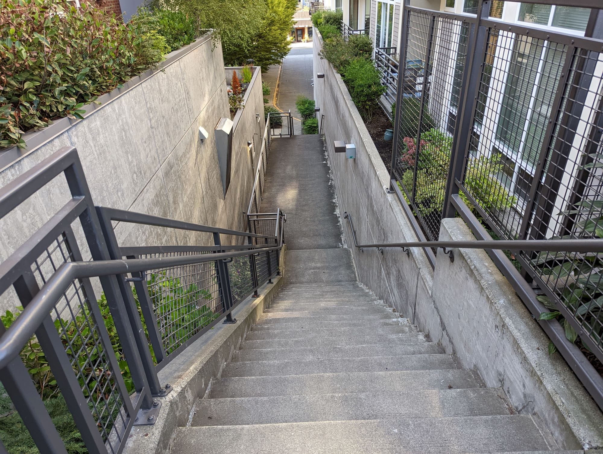 Other networks of fair pedestrian infrastructure include Moss Bay or Downtown Kirkland, the CKC, and Lakeview’s waterfront. Centered around Peter Kirk Park, Moss Bay/Downtown Kirkland is supported by fair sidewalks and some fun pedestrian paths that help break up large and oblong blocks with through block connections. Kirkland Urban, Peter Kirk Park, between some apartment and townhome complexes, and maybe Park Lane one day are among some of the paths exclusive to pedestrian and bike access like the CKC, Kirkland’s segment of Eastrail. Kirkland stands out from its Eastside neighbors with their segment of the Eastrail nearly complete. I was also amazed by all of the small neighborhood connections to Eastrail throughout Kirkland. The entry from NE 106th Street was basically its own little trail.
