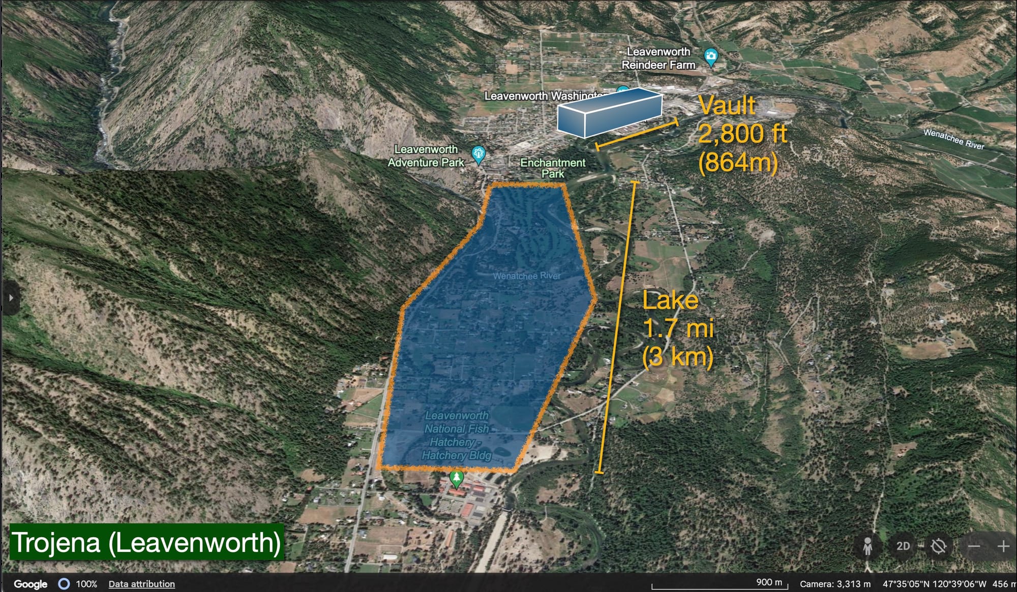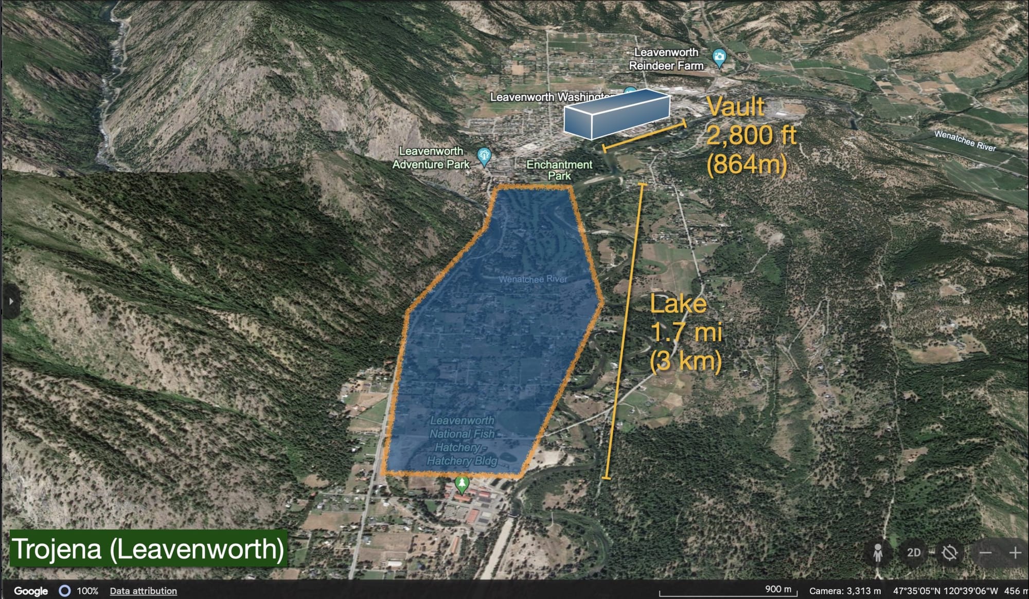 More illustrative may be Washington’s beloved Bavarian town of Leavenworth. The Vault proposed for Trojena is the length of US 2 from Gustav’s to McDonald’s and though the decorated town center. It will be about half the height of the town’s ski hill and host most of the development’s 3,600 hotel rooms. Leavenworth has just over 1,200 rooms. The artificial lake would cover the distance from Leavenworth’s golf course to the fish hatchery. Sadly, there is no indication that the Kingdom will be waiving its strict alcohol policy to compete with Leavenworth’s liter beers, although wine and champagne may be coming to NEOM.
