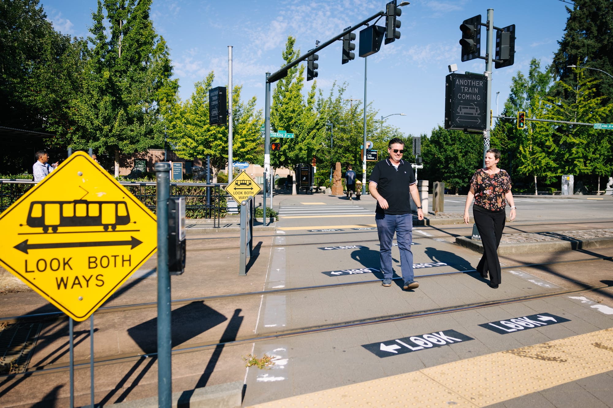 Some improvements have been made in recent years. In 2022, Sound Transit and SDOT signed a new agreement to work together on improvements along MLK, and in the following months, new warning signs and markings alerting pedestrians to the presence of trains went up around stations.