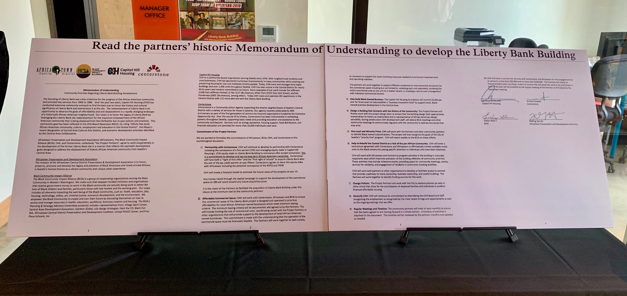 According to the language the historic Memorandum of Understanding, in fifteen years, nonprofit developer Capitol Hill Housing will offer first right of refusal for the building’s ownership to Byrd Barr Place (formerly Centerstone), which was renamed in honor of Roberta Byrd Barr, a prominent African-American educator and journalist.
