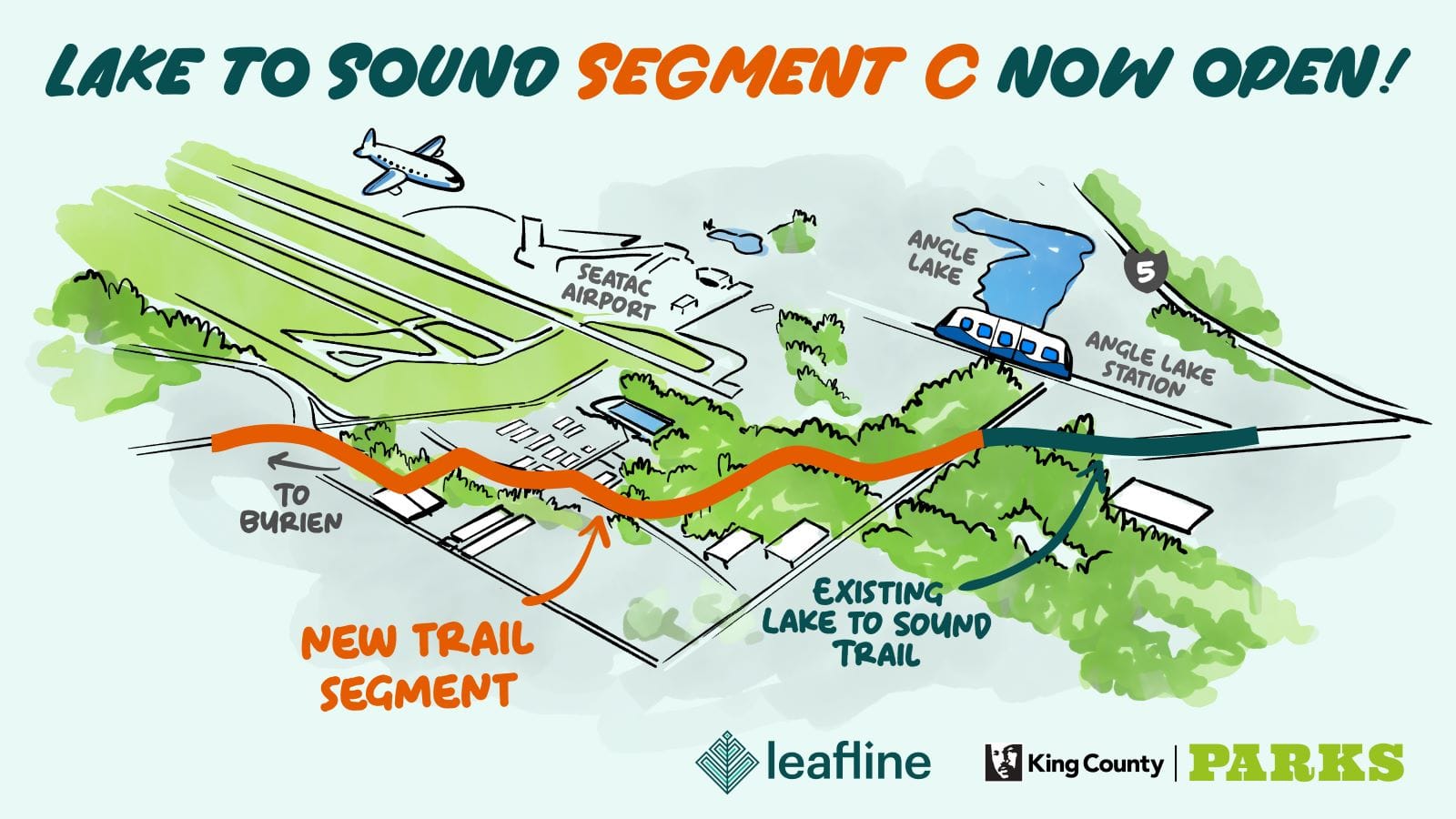 Shaw said that previous sections of the Lake to Sound Trail, which was first conceptualized and funded in 2009, include Segment B, west and north of the airport, which opened in 2018, and the 1.2-mile Segment A south of Skyway that incorporated parts of the Green River Trail, which opened in 2020.