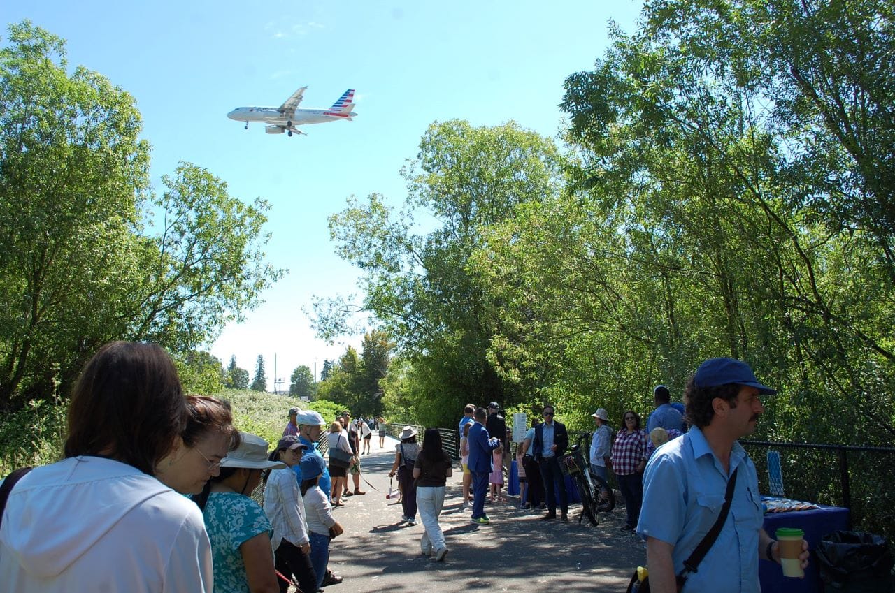 On a sunny Saturday in early June while noisy commercial jets made their approach to landing at SeaTac International Airport, King County and the City of SeaTac celebrated the opening of a new 2.2-mile segment of the paved Lake to Sound Trail. When complete, the 16-mile non-motorized trail will stretch from the southern tip of Lake Washington in Renton to the shores of Puget Sound in Des Moines.