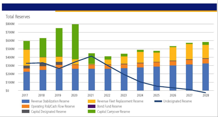Capital expenditures on the other hand are a mixed bag given that they are higher on balance than the previous biennium, but cutbacks are still happening from what had been planned for this biennium. The non-fleet infrastructure capital program had originally been pegged at $663.1 million for the new biennium, but the adopted capital program reduces those expenditures to just $554.4 million, pushing the capital program out into other years in the decade when recovery and other financial resources may make larger capital investments feasible. Likewise, fleet capital program also saw a reduction from $221.2 million to $90.0 million. Some carryover carryover funding from the previous biennium, not new appropriations, is padding these programs.