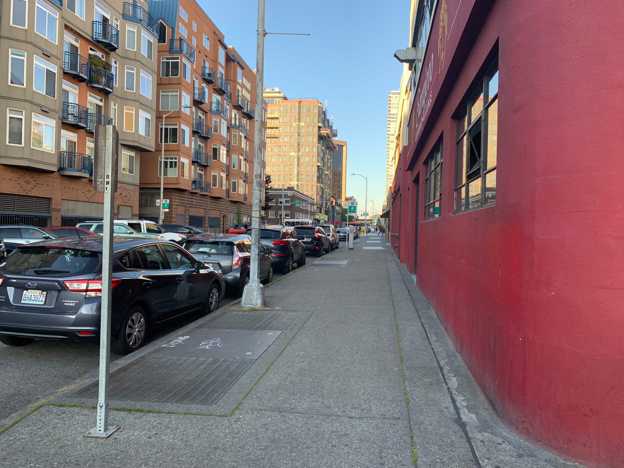 Currently more flexibility exists on Battery Street between 1st Avenue and 3rd Avenue because the street does not have bus lanes in that segment. The hope is that a lane of traffic in this stretch can be reclaimed and used to add greenery to the street, ideally in the form of green stormwater infrastructure like bioswales.