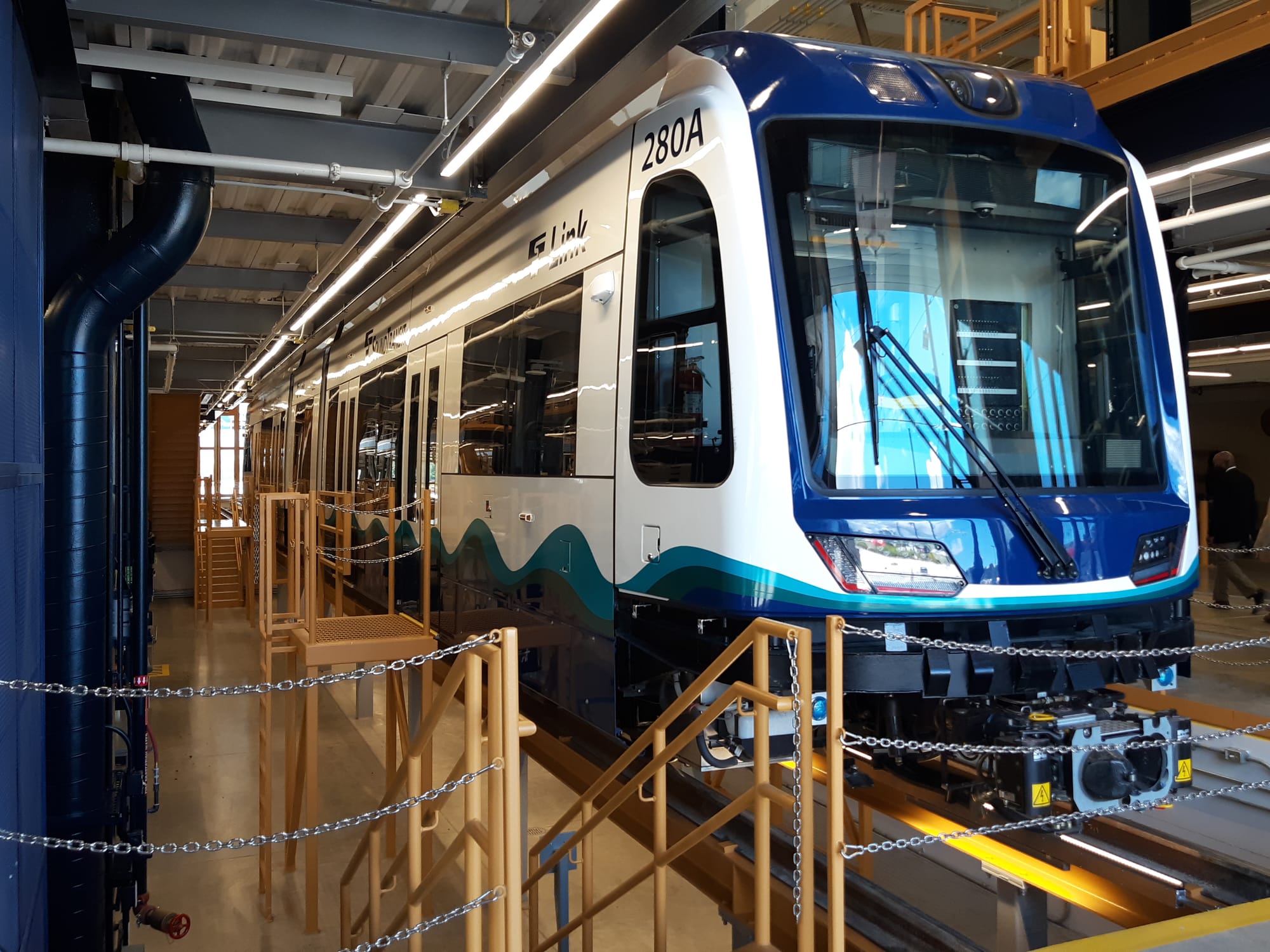 The agency’s new Operations and Maintenance Facility East (OMFE), located on the north side of Bellevue’s rapidly growing Spring District, provides important maintenance infrastructure to support light rail expansion. The facility will be the workplace of up to 260 employees, and its 14 service bays will support the maintenance and storage of up to 96 light-rail vehicles, including Sound Transit’s shiny new Series 2 light rail vehicles (LRVs).