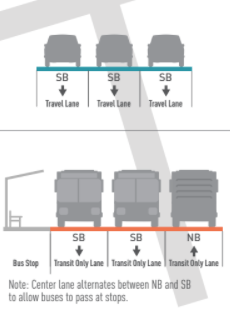 Even with scaling back the number of bus routes that travel through the heart of Downtown as outlined above, street changes are still going to be required there to keep travel times competitive for riders and to maintain capacity as Downtown construction projects all converge at the same time. The choice right now is: are we going to decide to invest a heavy amount of money into capital improvements for our Downtown streets in order to save money on operating costs, or are we going to make minimal investments in our infrastructure and instead leech operational funds as our buses sit in an increasingly congested Downtown core? Clearly, the answer is somewhere on that spectrum. There are four options being considered.