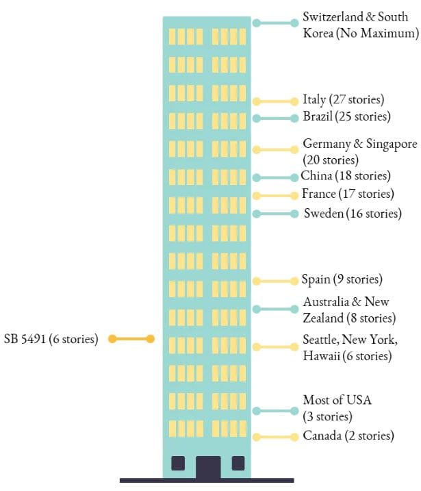 Stephen Smith, the executive director of the Center for Building in North America, said it best during the Senate housing committee public hearing for SB 5156. “There are practically no new walk up apartment buildings in Western Europe, while they are still common in the United States and in Washington State. It’s not good for disabled people. It’s not good for elderly people. It’s not good for parents of young children. It’s not good for first responders. The situation is unbecoming of a country as wealthy as we are.”