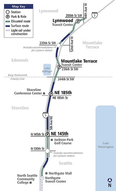 Building the station as a part of Lynnwood Link would spare Sound Transit the operational difficulty of needing to interrupt service to work on an in-fill station added at a later date. Building it simultaneously would decrease the station’s capital costs, most likely. It’d help serve transit riders that much sooner. A 2024 opening date could also propel plans to build more housing in the area, both by adding a new Urban Village around the station and potentially by redeveloping Jackson Park Golf Course, which is City-owned but losing money and located just to the northeast of the proposed station.