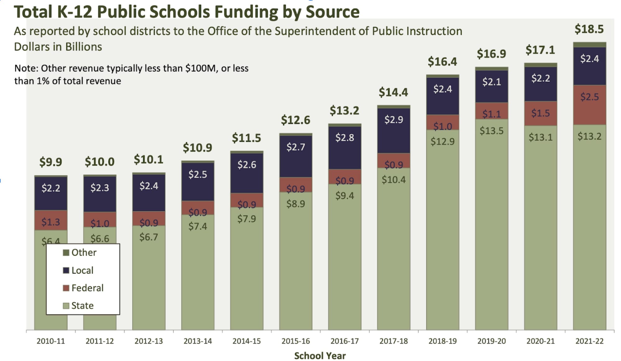 At the core of the crisis facing every school in Washington is the state legislature’s ongoing refusal to amply fund public education. In the 2012 McCleary case, the Washington Supreme Court ruled that the state legislature needed to spend more money on K-12 public education to comply with the state constitution. The legislature dragged its feet and was held in contempt for five years, until 2017 when the legislature adopted a new education funding system.