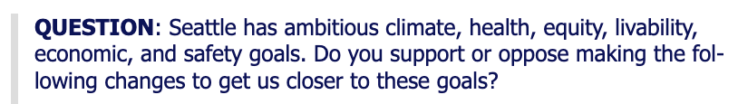The next question related to changes that were connecting to helping Seattle achieve its climate, health, equity, livability, economic, and safety goals.