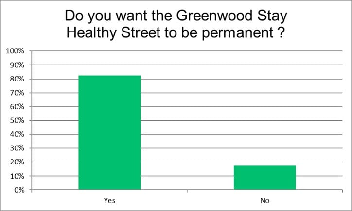 The path for the Greenwood project illustrates how SDOT is focusing on identifying individual approaches to making improvements neighborhood-by-neighborhood. At a public meeting focused on the Greenwood Stay Healthy Street last week, which you can watch the recording of online, it was pretty clear just how personally people take changes to streets near where they live. A number of meeting attendees raised issues they have with the street, ranging from concern over people running while wearing headphones, to active street use taking away from the enjoyment of a spring cherry tree in bloom. But a survey from earlier this year showed that out of more than 700 responses, more than 80% of people supported making the Greenwood Stay Healthy Street permanent. But we have to get the design right.