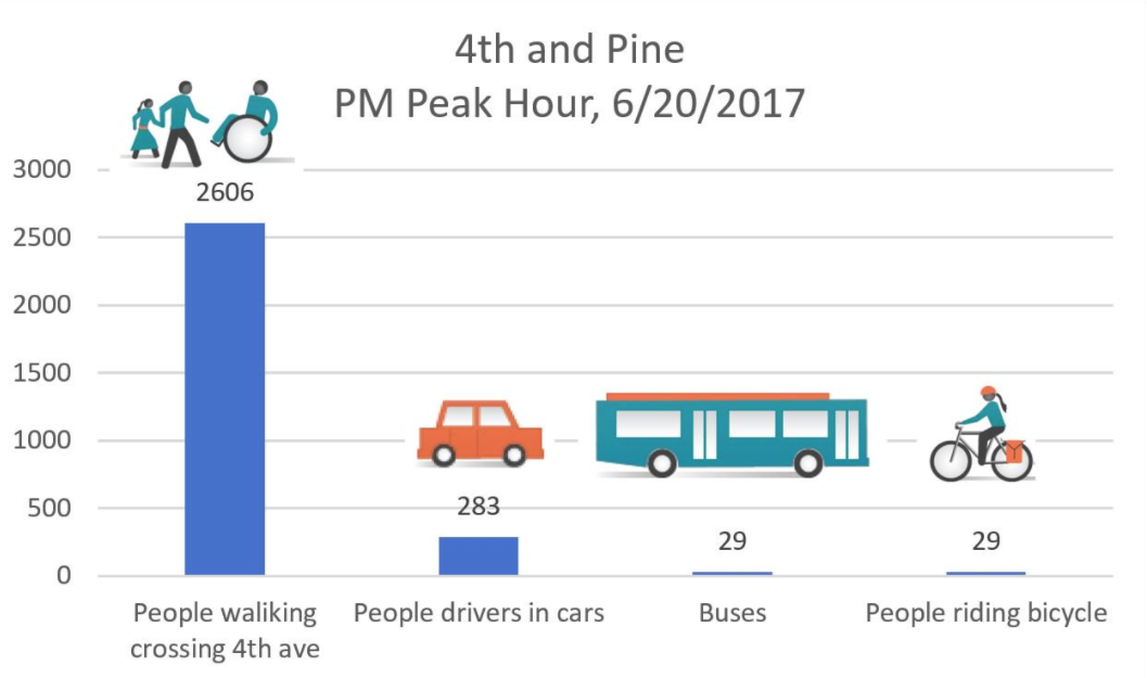 Dongho Chang, Seattle’s head traffic engineer, posted the following chart to his Twitter account last week, showing data from observations at Fourth Avenue and Pine Street back in June.