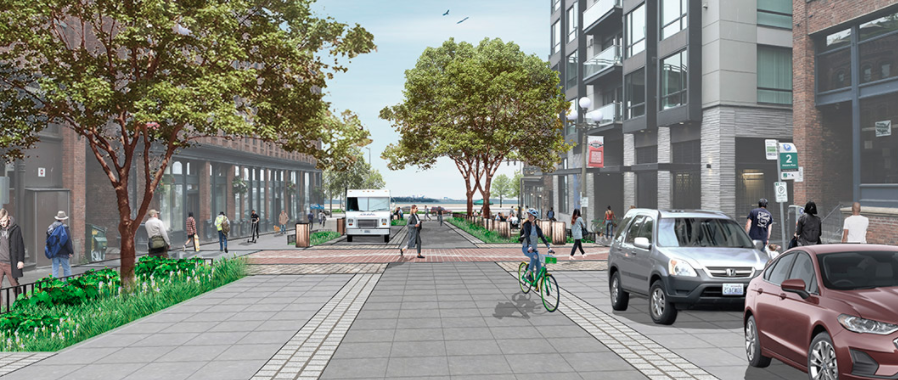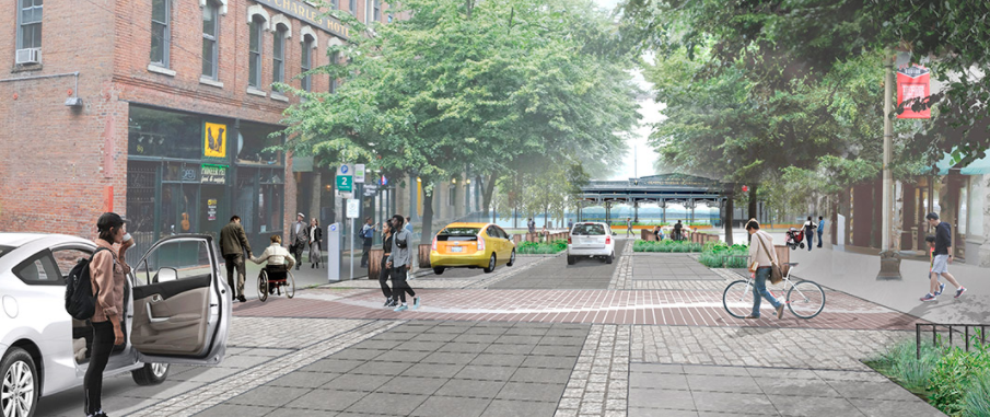 Minimal improvements are proposed to King Street, just one curb extension with added street plantings on the north side of the street west of 1st Avenue. Since King Street dead-ends at the train station, it would be great to reallocate more of this street to pedestrian and bicycle priority, but it will mostly stay unchanged.