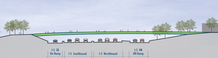 In addition, ODOT is proposing a slew of other improvements around the Rose Quarter to sweeten the deal for Portland. One of the main carrots is a proposed lid over I-5 that would replace the existing freeway crossings. The lid would actually consist of two separate I-5 covers, one at Broadway, Weidler, and Williams streets and another smaller one at Vancouver and Hancock. Lidding the freeway should make the highway bridges more likely to survive earthquakes, according to ODOT.