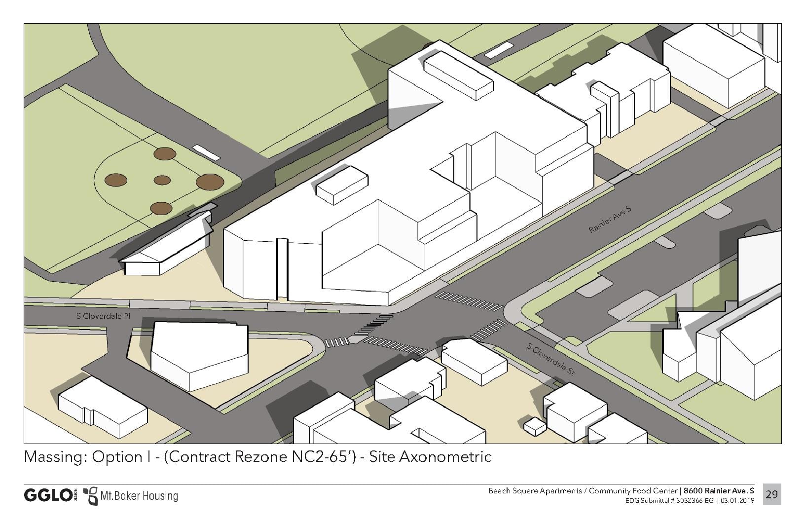 At the intersection of Rainier Avenue S and S Cloverdale Street, the six-story Via 7 affordable housing complex being built by Mt. Baker Housing Association will offer 220 affordable homes, and is currently in the permitting process. The building will focus on providing homes to families making less than 60% of AMI or less, and at least a third of the units will be two- and three-bedroom units. Forty parking stalls are proposed.