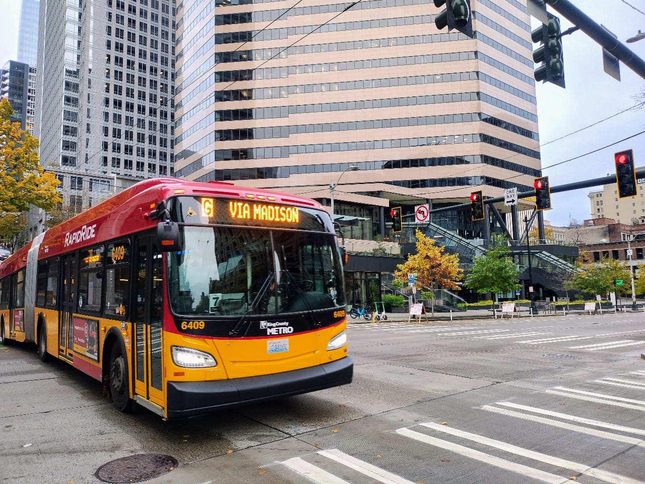 Initial ridership on the RapidRide G, Seattle’s newest bus rapid transit line, is strong and growing, according to data provided by King County Metro. Since its launch on September 14, riders have taken more than 150,000 trips on the G Line. The 2.5-mile bus line runs on Madison Street, connecting Downtown Seattle to Madison Valley via Capitol Hill and the Central District.