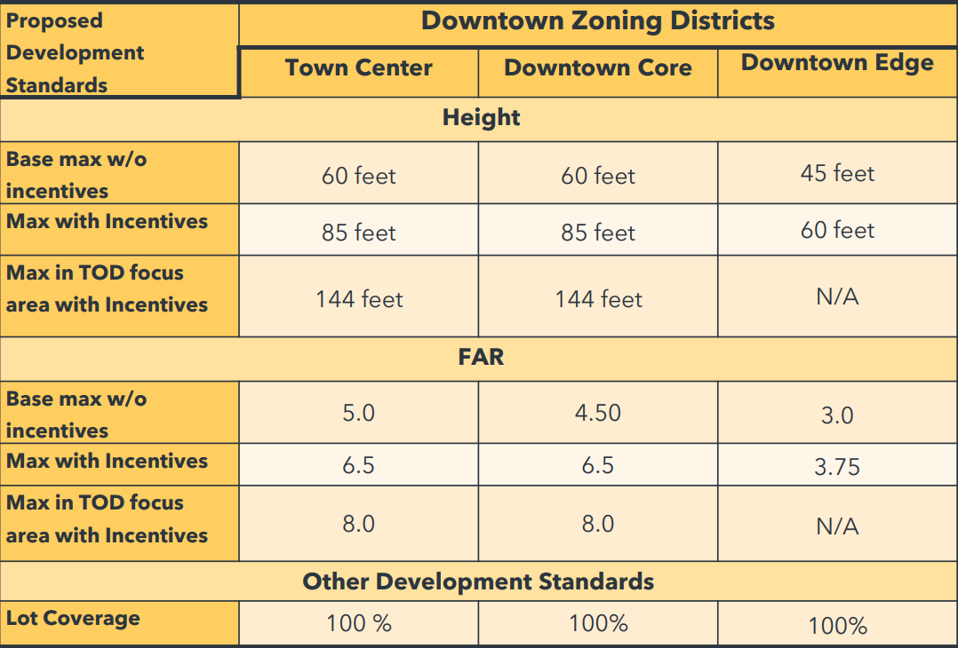 In the Neighborhood Residential zones, sixplexes plus two accessory dwelling units (ADUs) will be allowed on many lots, but some restrictions will still apply, and of course single family homes will still exists, staff were careful to point out. Covenants, conditions & restrictions (CC&Rs) at homeowners associations (HOAs) would still be in force, limiting the impact of reforms in planned single family communities.