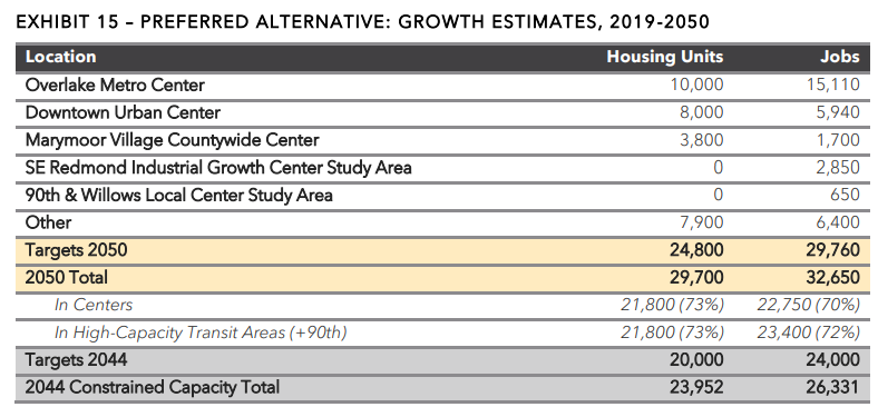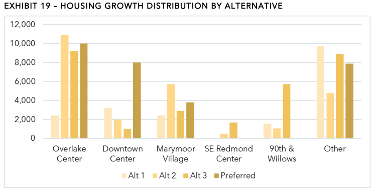 The Redmond 2050 study‘s Alternative 3 would have added a significant amount of housing in the Willow-Rose Hill neighborhood around NE 90th Street and Willows Rd, but the City ultimately opted against including that option in the plan. Effectively, this would have been a fourth growth center, with more housing projected to be added than in Marymoor.