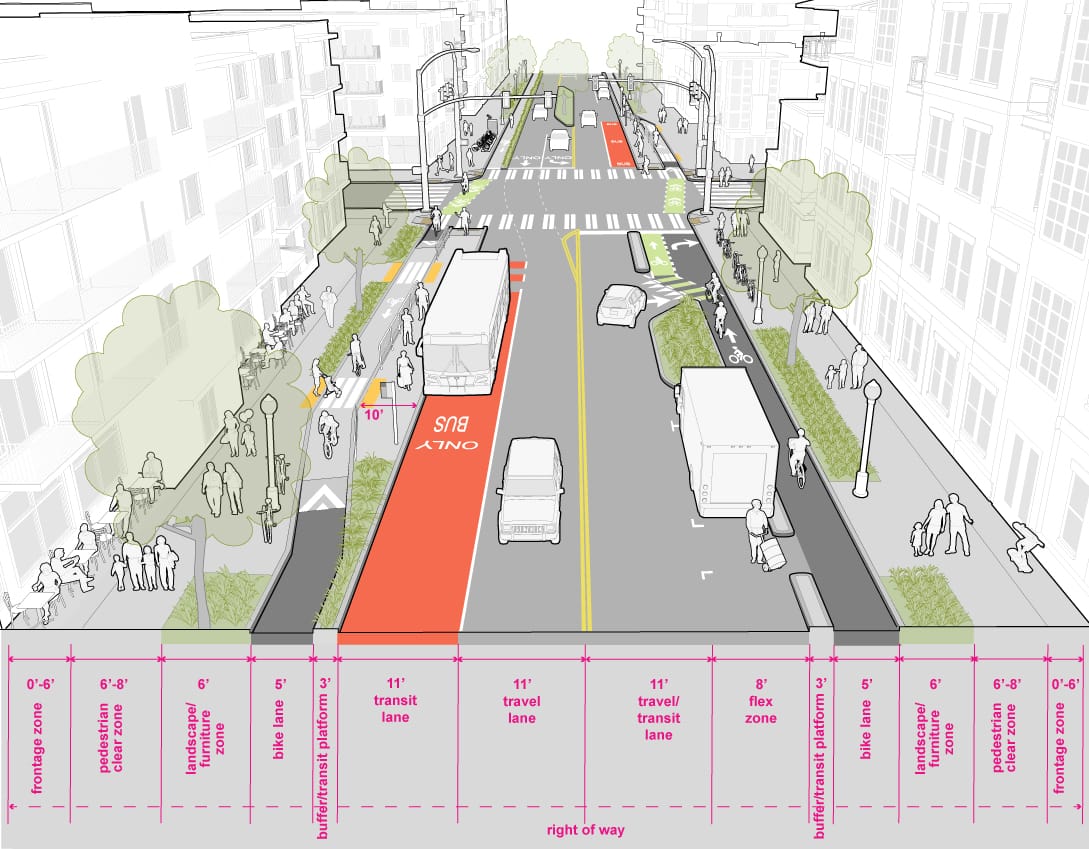 The designs for repaving do not consider any increase in the size of the sidewalks. There is no addition of protected bike lanes or transit-only lanes, just spaces for parking. The design does not address how the newly minted Stay Healthy Street on 17th Avenue interacts with this four-lane highway. The plans do not show space for street cafes and enough space to socially distance. This is a design for a pre-Covid era.