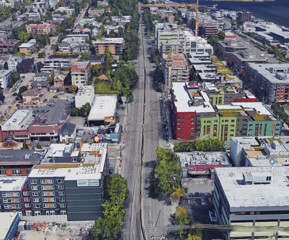 And before you wonder about Aurora, the state highway, being an undesirable location for residential buildings, study its ingredients. This one-mile stretch has two dedicated bus only lanes. It has six traffic lights, and speeds of 35 miles per hour. This segment of Aurora doesn’t even rank in Seattle Department of Transportation’s top 10 trafficked streets in the city. It’s no more a state highway than 15th Avenue NW. Aurora’s commercial lots also span two blocks deep. While frontage on Aurora is necessary, quieter side streets also provide opportunity for residential focused development and a softer edge for coffee shops, restaurants, and retail shops.