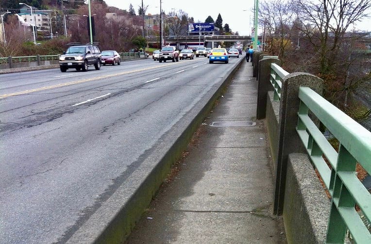 In 2008, cyclist Terry McMacken died after sustaining injuries in a crash on the Ballard Bridge. McMacken’s tragic death drew attention to the problem of the three-and-a-half foot sidewalks and ten inch curb that separate pedestrians and cyclists from vehicle traffic for the majority of the bridge’s length.