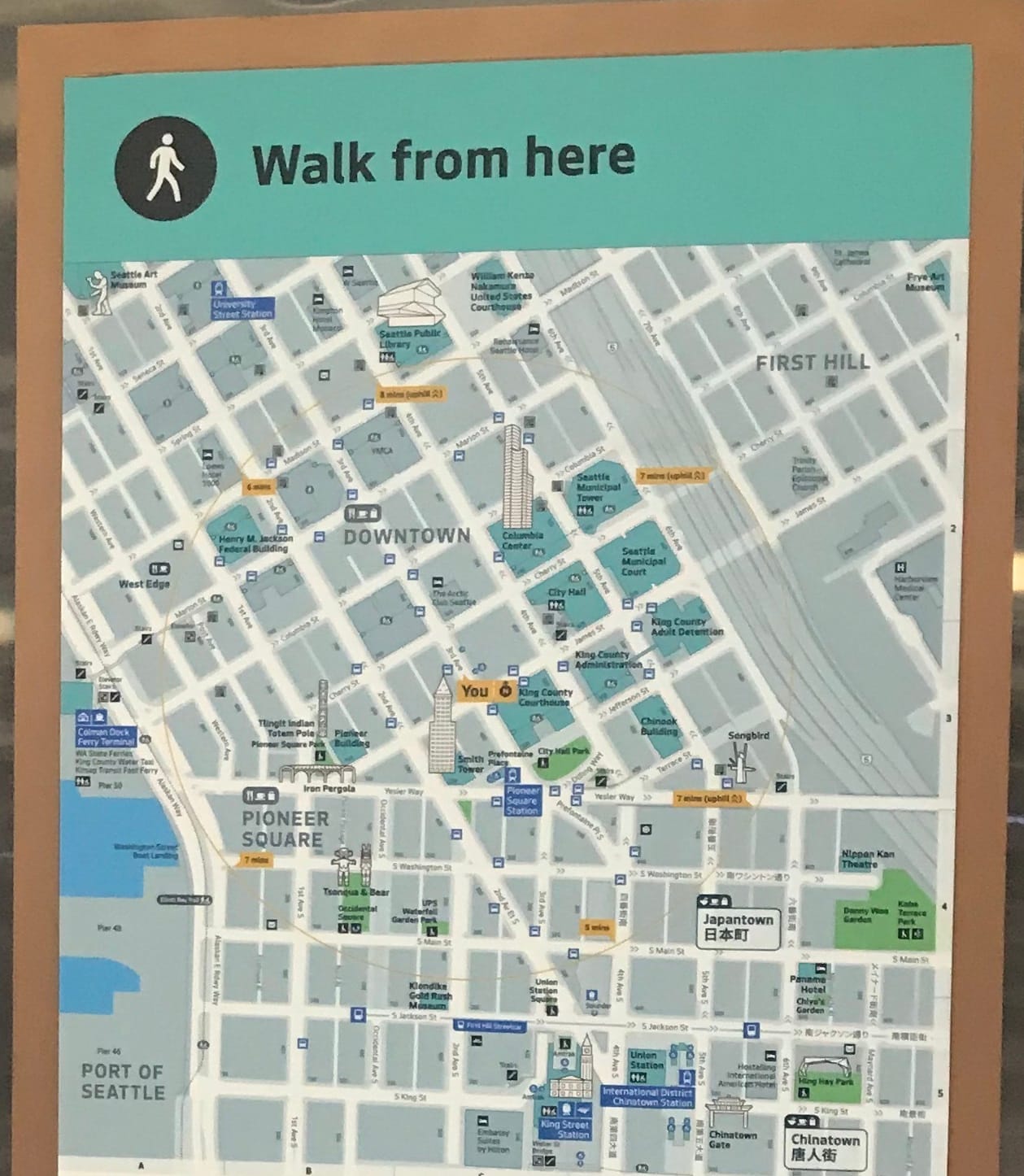 - Overview Sign – Placement at welcome points to give users site-specific useful context and overview of the city and help them plan longer journeys will a wider view of Seattle;