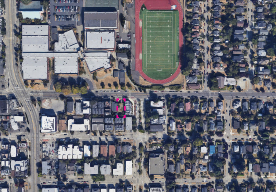 The first social housing prototype came from the 2023 Seattle Design Festival with a submission by a group led by architect Juliette DuBroca, and including Jesse Davis, Ema Sheehan, Jacqui Aiello, and Anna Brodersen. The group came together via the Committee on Homelessness (COHO) at the American Institute of Architects Seattle (AIA Seattle). What the COHO group proposed was a nine-unit apartment building with one ground-floor commercial space and a mix of unit sizes including two- and three-bedroom units. The roughly 4,000-square-foot lot being eyed was a surplus City-owned site at 1405 NW 65th Street in Ballard.
