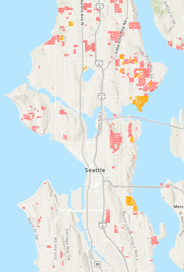 On parcels within the city that have a documented history of a racially restrictive covenant, the density bonus is even higher. The University of Washington’s Racial Restrictive Covenants project has identified more than 37,000 properties across King County as a whole where deed restrictions locked entire ethnic and religious groups out of home ownership opportunities, with those areas remaining some of Seattle’s most exclusive neighborhoods to this day. This provision around restrictive covenants would even allow a Roots to Roofs project within a city-designated historic district, where it normally wouldn’t be permitted.