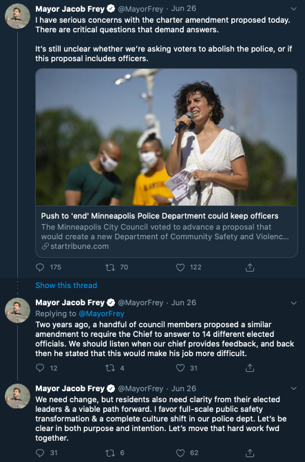 Although Minneapolis gained national attention when its city council voted to abolish its police force and replace it with a department of public safety, the city is facing its own hurdles in terms of making the vote a reality. Mayor Jacob Frey has been unwilling to support defunding and called instead for reforms to the existing department. And until a city charter which requires funding for the police force is either struck down or amended, the city council may be unable to move forward with its plans.