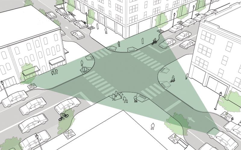 - Solution: Improve visibility at intersections: Hoboken, New Jersey has reached Vision Zero, and credits much of their success to making it easier to see at intersections by restricting illegal parking with posts or curb bulbs, while slowing down turns.