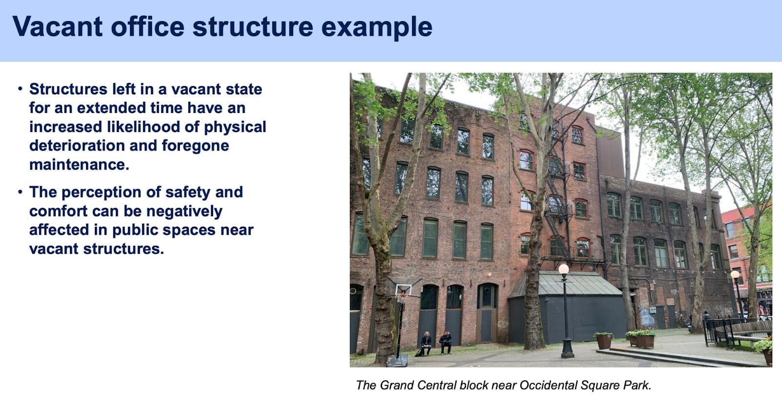 Underpinning part of the legislation is state law passed last year, which requires Seattle to remove barriers to conversion of commercial buildings to residential uses in zones where commercial and mixed uses are allowed. That statute requires regulatory changes before July 2025 by generally waiving parking mandates, setbacks, floor area ratio, density limits, and exterior design and architectural requirements.