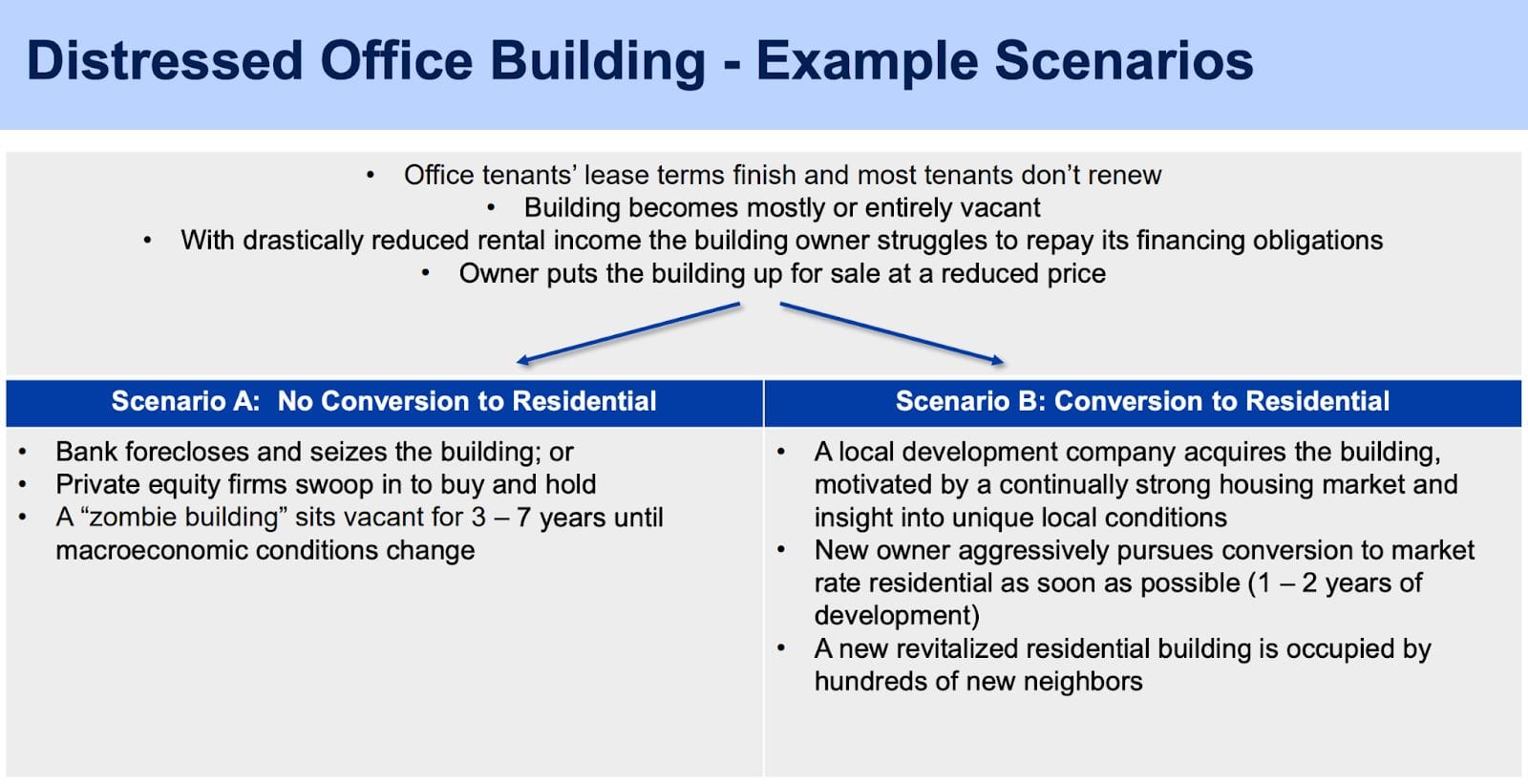 Harrell’s legislation was amended by the City Council before final approval. But the key features of the legislation largely remained intact, offering an incentivized pathway for existing non-residential uses in buildings to convert to residential uses.