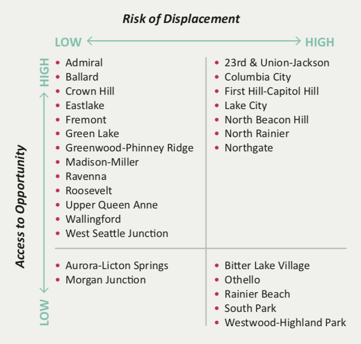 Impacted neighborhoods include: Aurora-Licton, Fremont, Morgan Junction, North Rainier, Northgate, Roosevelt, Wallingford, West Seattle Junction, and Westwood/Highland Park.