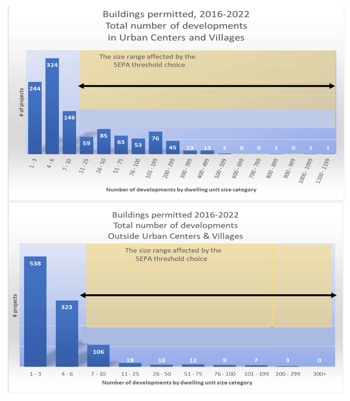 “It is rare that any development, even in the range of 100-500 dwelling units in size, receives SEPA mitigation measures tied to unique environmental impact findings. Available data from the 2010s shows that only 16% (about 1 in 7) of SEPA reviewed residential developments led to SEPA-based mitigation conditions, among approximately 250 development decisions,” the report stated. “For a smaller sample of non-residential developments, only about 30% of the projects had outcomes that included any SEPA-based mitigation for specific site impacts.”