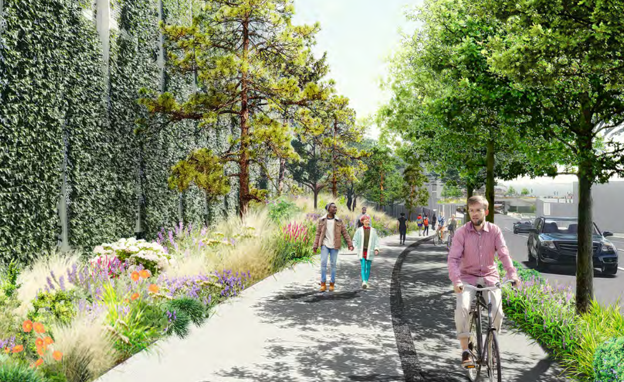 An overlook point planned at Blanchard Street early in the waterfront project failed to materialize during negotiations between the City, the BNSF railroad, and WSDOT. A small parcel dubbed the “opportunity site” had been initially put forward as a neighborhood playground in early waterfront concepts by the firm James Corner Field Operations, but that too was scaled back. City Light had been eyeing that site for a surface parking lot for electric vehicle charging, but backed away from that plan late last year, leaving its future up-in-the-air. And the largest potential piece of new open space in the area, the Battery Street Portal property at First Avenue, is being held open, potentially well into the next decade, for a possible downtown public school. The renderings for Elliott Way, which include fully grown-out landscaping and trees while they minimize the width of the roadway, belie the fact that most of the benefits of the waterfront will be seen in areas that are not Belltown.